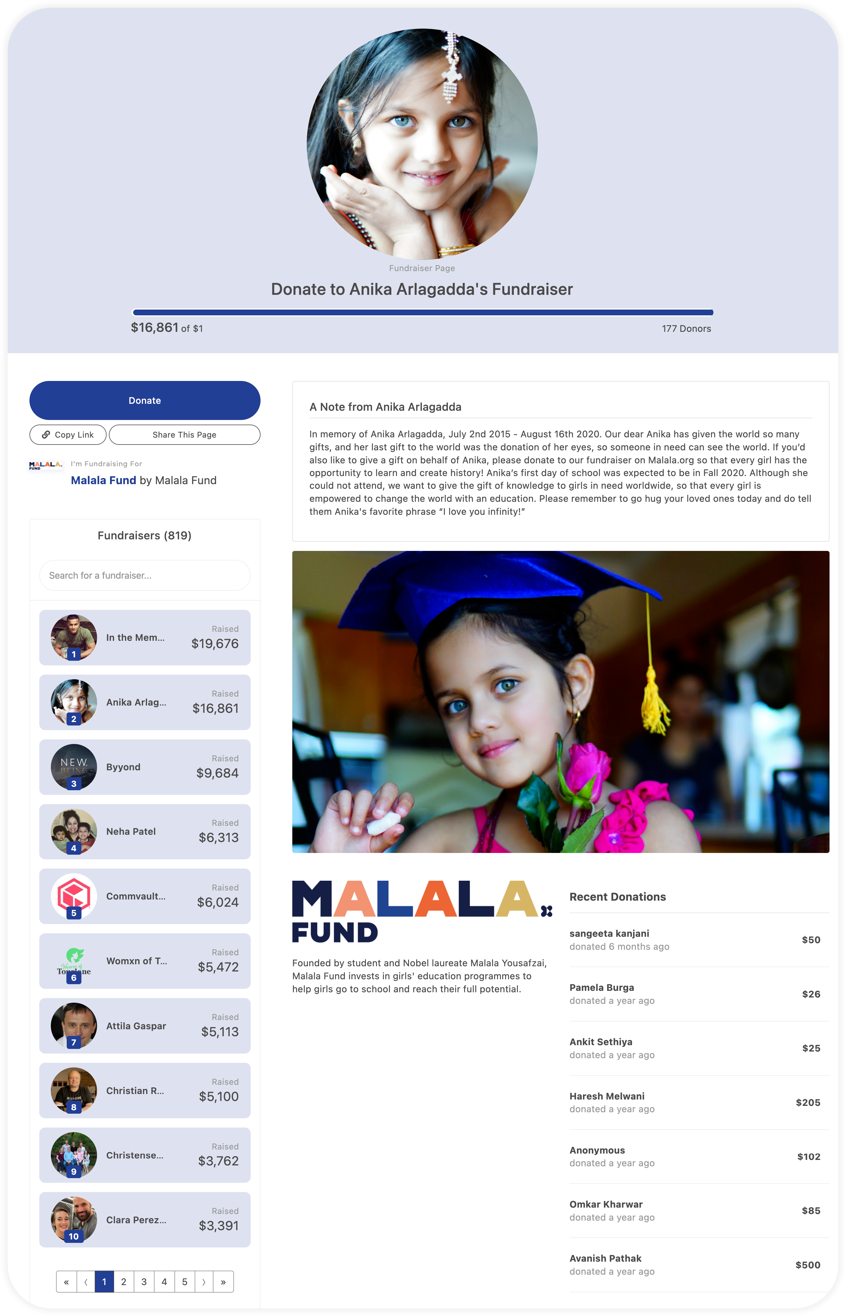 In 2017, Malala approached Give Lively in search of a state-of-the-art donation solution, one that would be quick and easy, keeping donors on its own website. Importantly, it would address a larger quest for a seamless donation experience, a challenge faced by many nonprofits using digital fundraising tools. The collaborative development process between the Malala Fund and Give Lively teams resulted in our popular Donation Widgets, technology now available to all nonprofits.